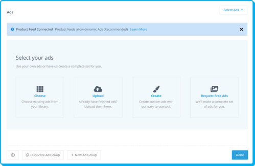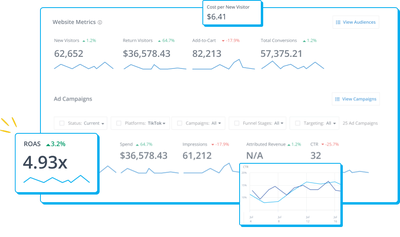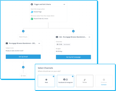 Run a single campaign that spans across the web, Facebook, Instagram, TikTok, and/or Pinterest. Automation builder is the only tool that optimally coordinates cross-channel ad campaigns from one platform.