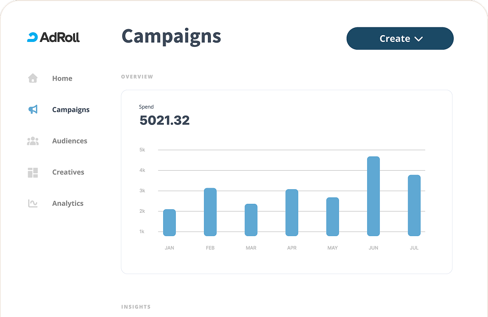 Grow your business with retargeting campaigns, free creative support, and insights from AdRoll's AI Assistant. No fee to get started and pay only for media.