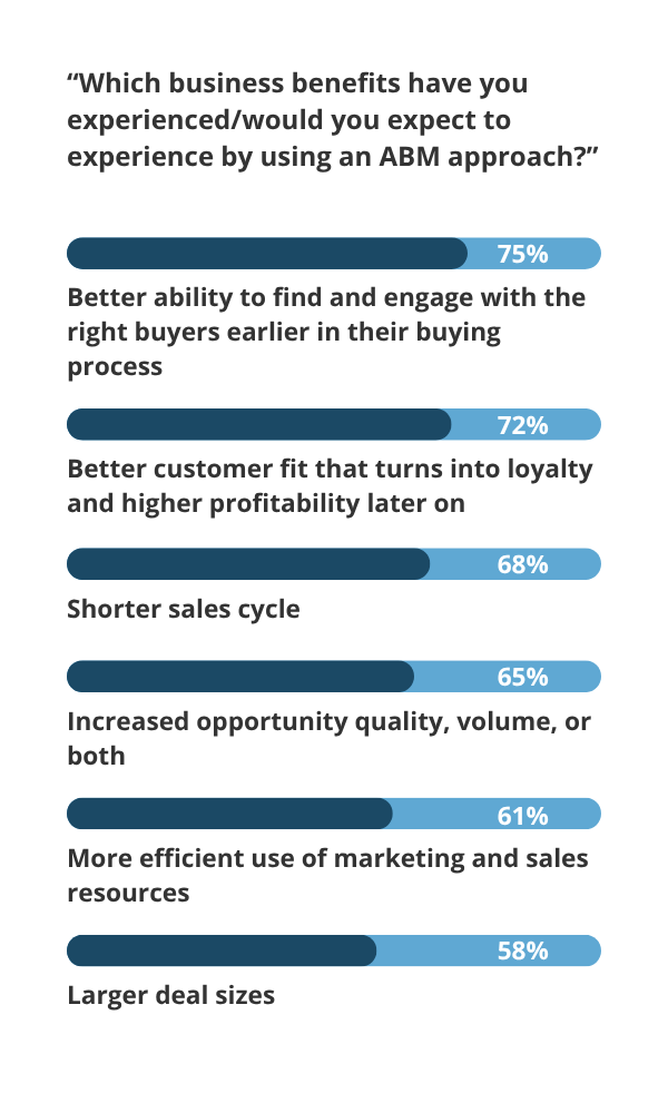 It’s here where ABM shines. In our study, 75% of B2B marketers said using ABM allowed them to find and engage with the right buyers earlier in their buying process.