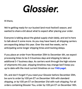 Glossier sent this email a week before Black Friday in an effort to maintain open communication with customers.
