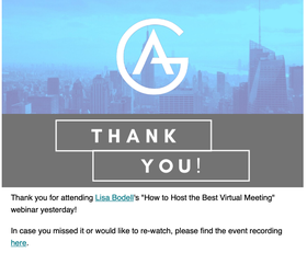 Be sure to follow up with attendees after your webinar — it’s a fantastic opportunity to offer them more value and keep them engaged. Beyond thanking them for their time, consider providing a small token of appreciation. You can: