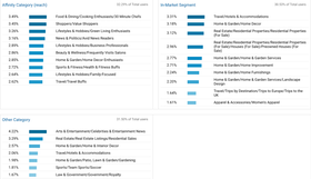 In-market segments like home & garden/home décor and apparel & accessories/women’s apparel