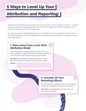 But how should you go about ascribing value to your marketing channels, touchpoints, and interactions? Here are five tips for leveling up your attribution and reporting efforts, complete with next steps to get started. (Psst — use our worksheet to keep track of your tasks!)