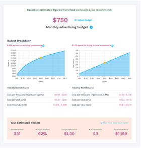After providing a few simple details about your business — including your industry and monthly website visitor count — our ROAS calculator will help you decide how much to invest in digital advertising.