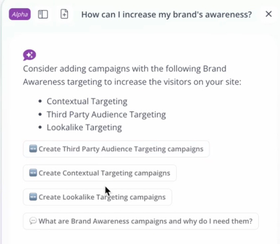 You can give AI your campaign goals and let it generate draft campaigns, recommend strategies, or suggest initial budget allocations.