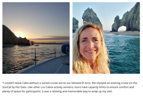This local knowledge includes a focus on local news and current events. For instance, Cabo Villas has implemented a living and breathing online safety guide for potential visitors, covering everything from safety regulations to the activities and restaurants that are currently open. They've even published a blog post featuring their Vice President of Sales, Julie Byrd, to document what it's like to travel during COVID times.