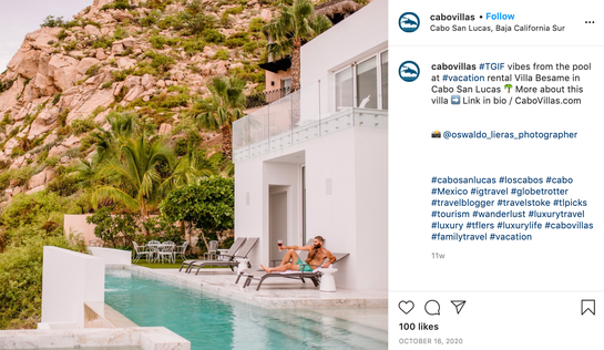 But how is the Cabo Villas team whetting peoples' appetite for traveling? By promoting their campaigns through a mix of organic and paid social media across Instagram, Twitter, Facebook, Pinterest, and LinkedIn.