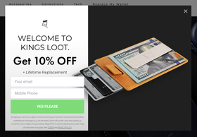 King’s Loot, a wallet brand, establishes its value exchange — 10% off plus a lifetime replacement. Talk about a good deal!