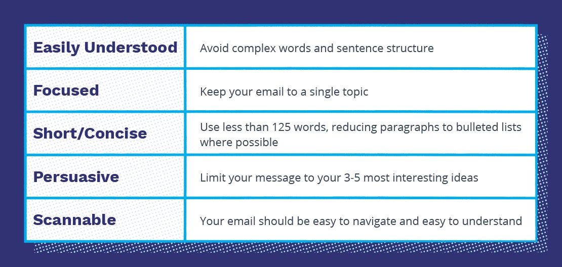 The email copy should be short, concise, and personalized. To achieve this, we recommend the following: