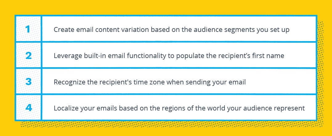 Speaking as directly to your audience as possible will help build that coveted relationship. But how do you go about personalizing emails at scale?