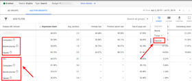 Pro tip: Checking Auction Insights is an especially relevant task if your conversion or click-through rates suddenly drop, as competitors can easily outrank you or steal your traffic in Google Shopping if they’re offering a similar but cheaper product. If you’re in a highly competitive space, it’s smart to review your Auction Insights weekly.
