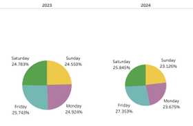 It’s less efficient to adjust budget last minute, and it’s most efficient to allocate budget evenly, hence the consistency. The slight adjustments between 2023 and 2024 could be due to Sunday and Monday of Cyber Week falling into December, therefore falling into a different monthly budget.