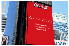 Coca Cola also went the extra mile with their offline advertising. They recently ran a billboard ad on Times Square that featured its brand name — typically written in tightly connected Spencerian script — with extended spaces between letters. The logo is accompanied by the message, “Staying apart is the best way to stay connected.”