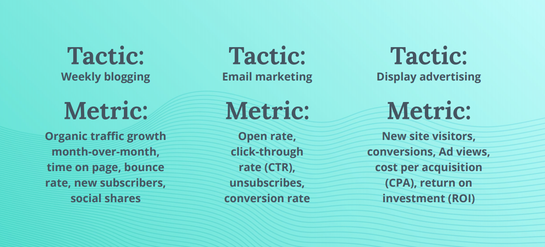 Once you know what you want to do, you can focus on how to get there. That’s when you’ll decide how you’ll measure success via metrics, and monitor those metrics regularly. This will help you determine the overall health of your marketing strategy.