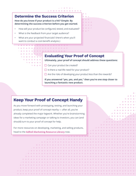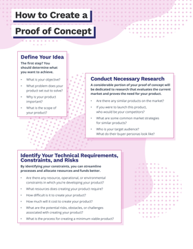 While your final proof of concept will depend heavily on your industry and the type of product you’re interested in creating, this checklist of questions for every step will keep you organized.