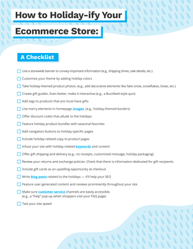 That’s why we’ve got you (holiday lover or cynic) covered. Cue up those holiday tunes (or not), put on an ugly sweater, and let’s get started — here’s a checklist on everything you have to do to holiday-ify your ecommerce site’s front-end.