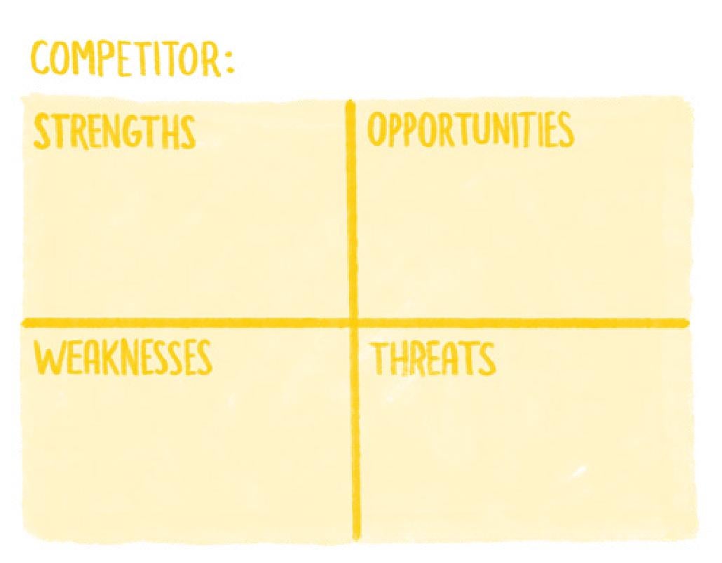 A SWOT analysis on your top competitors can help you better understand your own strengths and the opportunities available in the market. To perform the SWOT, list out each competitor’s strengths, weaknesses, opportunities that they present for you, and threats that they pose to your business.