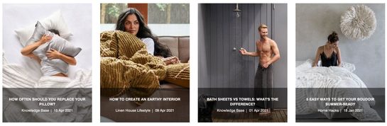 In addition to their popular journals, Linen House also dedicates a lot of time to their blog. "Much of our blog content is created through customer research," explains Julia. "We compile lists of the many questions our customers have about our brand and products and use the blog to expand on these answers. Product managers, designers, and stylists also get involved in the content, which holds well for offering well-researched and reliable information to our website visitors."