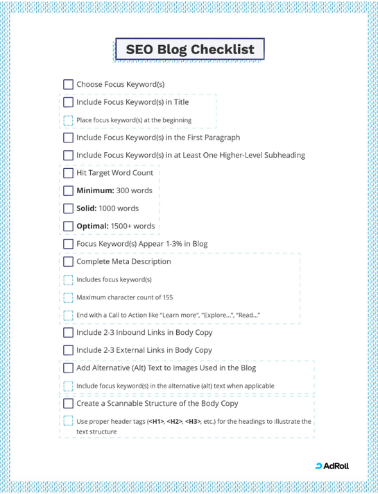 • Not optimizing for SEO. According to a recent study, although roughly 60% of businesses have blogs, 65% of those blog owners haven’t updated in the past year — let alone optimize their blog for SEO. If you don’t optimize your blog for SEO, you’re missing a huge opportunity to drive organic traffic and boost brand awareness. (Psst, use this checklist to get you started).