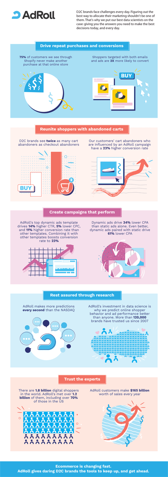 These figures — and our research — show that D2C brands using AdRoll are better poised for success than those who don’t.