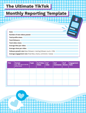 Luckily, we’re here to help you demystify your TikTok stats with this handy reporting template. Simply download or bookmark this sheet, then fill it out with the data provided by the TikTok app at the end of each month. Over time, you can uncover key trends on what makes your audience tick, as well as what types of videos you should invest your time and money in creating. Good luck!