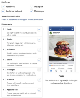Do your potential and existing customers spend more time on Facebook or Instagram? Do you want as much reach as possible, or will your ads seem out of place on mobile apps? If you want to avoid mobile apps, remove the "Audience Network" placement. If your ad takes some explaining, then "Facebook Newsfeed" may work, while a self-explanatory image is perfect for Instagram.