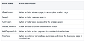 This direct integration between Facebook and Shopify automatically tracks six different events, plus each purchase's value. You can create campaigns that Facebook optimizes toward a specific event. After you collect enough sales volume, you can later optimize toward ROI. The six events that the pixel tracks include: