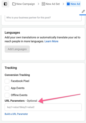 Plan to link purchases on your Shopify store back to specific campaigns and ads. Facebook provides a field in each ad where you can set tracking up easily. At the bottom of your ad settings, under "Tracking," you will find a "URL Parameters" field. You can set up URL parameters that will show up in analytics data for your site.