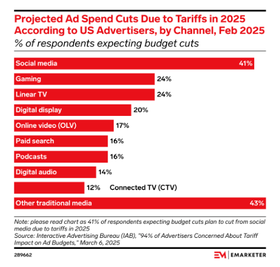 According to an IAB study, 94% of advertisers are worried about US tariffs. Over half of advertisers expect their budgets to drop by 6–10%.