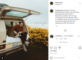Away does a great job creating influencer content that weaves storytelling into their posts.