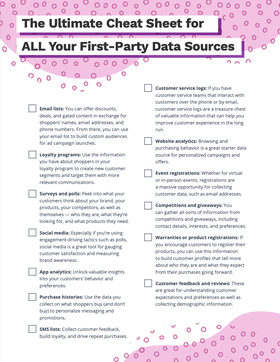 Enter this cheat sheet — use it as a checklist for gathering first-party data you can use to tailor your messaging and marketing. We’ve also included nifty recommendations on how to put this gold mine of first-party data to action and level up your brand. Have fun!