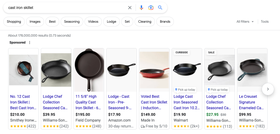 Like search ads, Shopping ads appear in Google search results. They’re created from the advertiser’s product data and include specific product information (store name, an image, price, customer rating, etc.). When a user clicks on a Shopping ad, they’re directed to the corresponding product page on the advertiser’s website where they can learn more about the product and continue on the path to purchase.