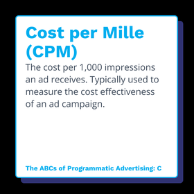 The cost per 1,000 impressions an ad receives. Typically used to measure the cost effectiveness of an ad campaign.