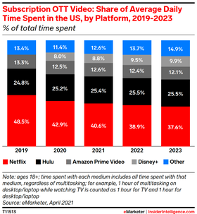 Netflix’s market share has dwindled in recent years due to fierce competition. But, as of now, it still comfortably holds the #1 spot. Source