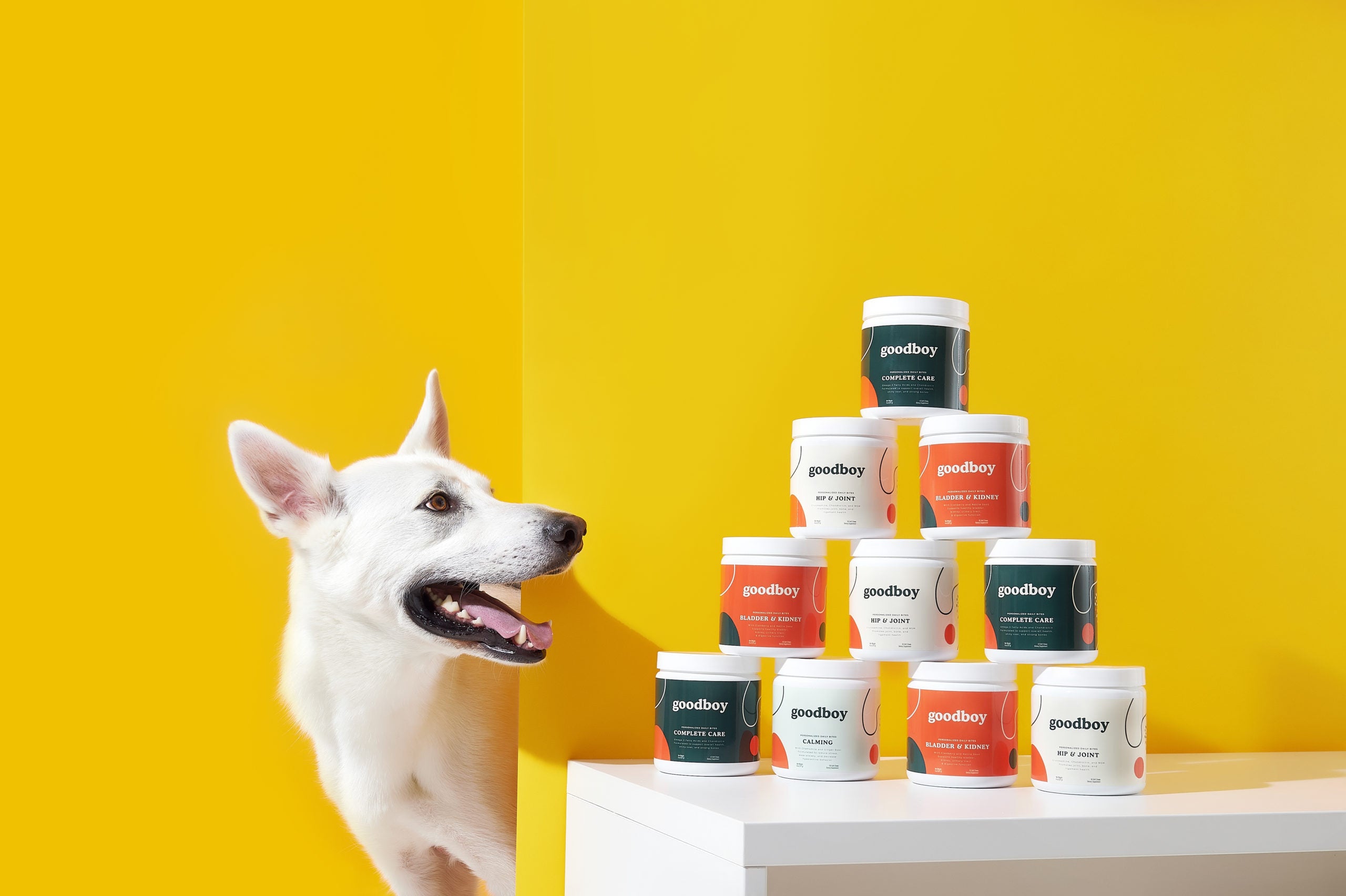 Goodboy was started in 2019 by Kari Sapp and Stefan Lewinger, childhood friends and colleagues from Lewinger’s last startup, a subscription sock service. Sapp was inspired to start the brand after her dog, a four-year-old Lab named Finley, was diagnosed with cancer. Shocked into action, Sapp mobilized her resources to find ways she could support her beloved pup in any way possible. Existing supplements for pets left a lot to be desired, so the only solution was to roll up her sleeves and build something monumental.