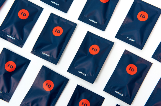 Ro, from their very early days as Roman, capitalized on all of these explanations. The name itself, Roman, was picked to overcome some of the emasculation men might feel when talking about ED. The colors, logo, font — the entire branding package — was conceptualized to overcompensate for the blow to the ego that came with admitting to having issues in the bedroom. And the prescriptions come in discreet packaging, to boot.