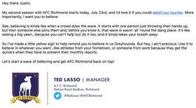 Ted Lasso goes beyond offline activations: Take a look at this promotional email from Apple TV+ written from Ted himself: