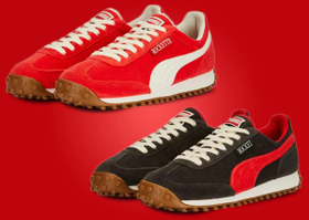 Named the “Puma My Love V-Day” pack, the sneakers showcased a blend of modern design and ‘80s inspiration, with features like heart graphics on the heel and traditional form strip logos. The Rocket Be Mine V-Day boasted a “Black For All Time Red” palette, while the Rockette My Love V-Day dazzled in “For All Time Red / Frosted Ivory.” Both vegan-certified sneakers offered comfort with EVA foam midsoles and a vintage touch with gum rubber outsoles.